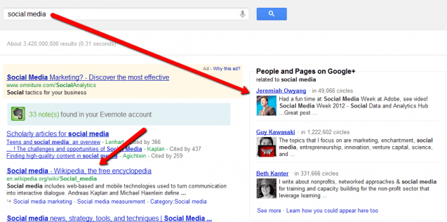 For instance, an optimized Google+ account can make you higher in the rankings than Wikipedia!